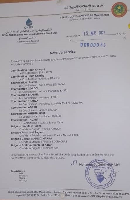 لعصابه : تعيين منسق جديد لمشروع ONSER ( مذكرة )