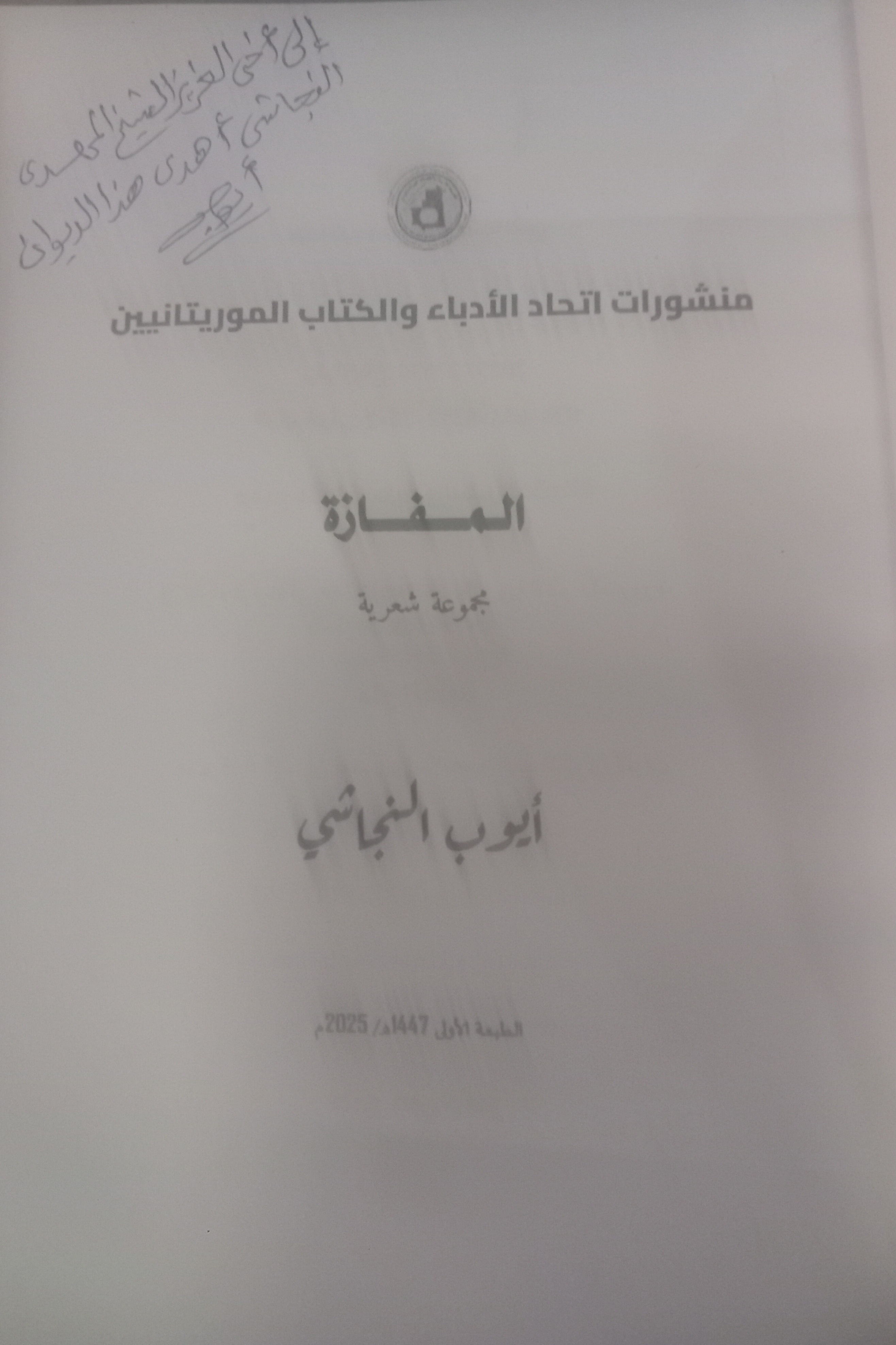 ديوان " المفازة " قدمه رئيس اتحاد الأدباء والكتاب الموريتانيين السابق المفكر والشاعر والمؤلف الخليل النحوي ويضم أكثر من 50 نصا شعريا فصيحا .